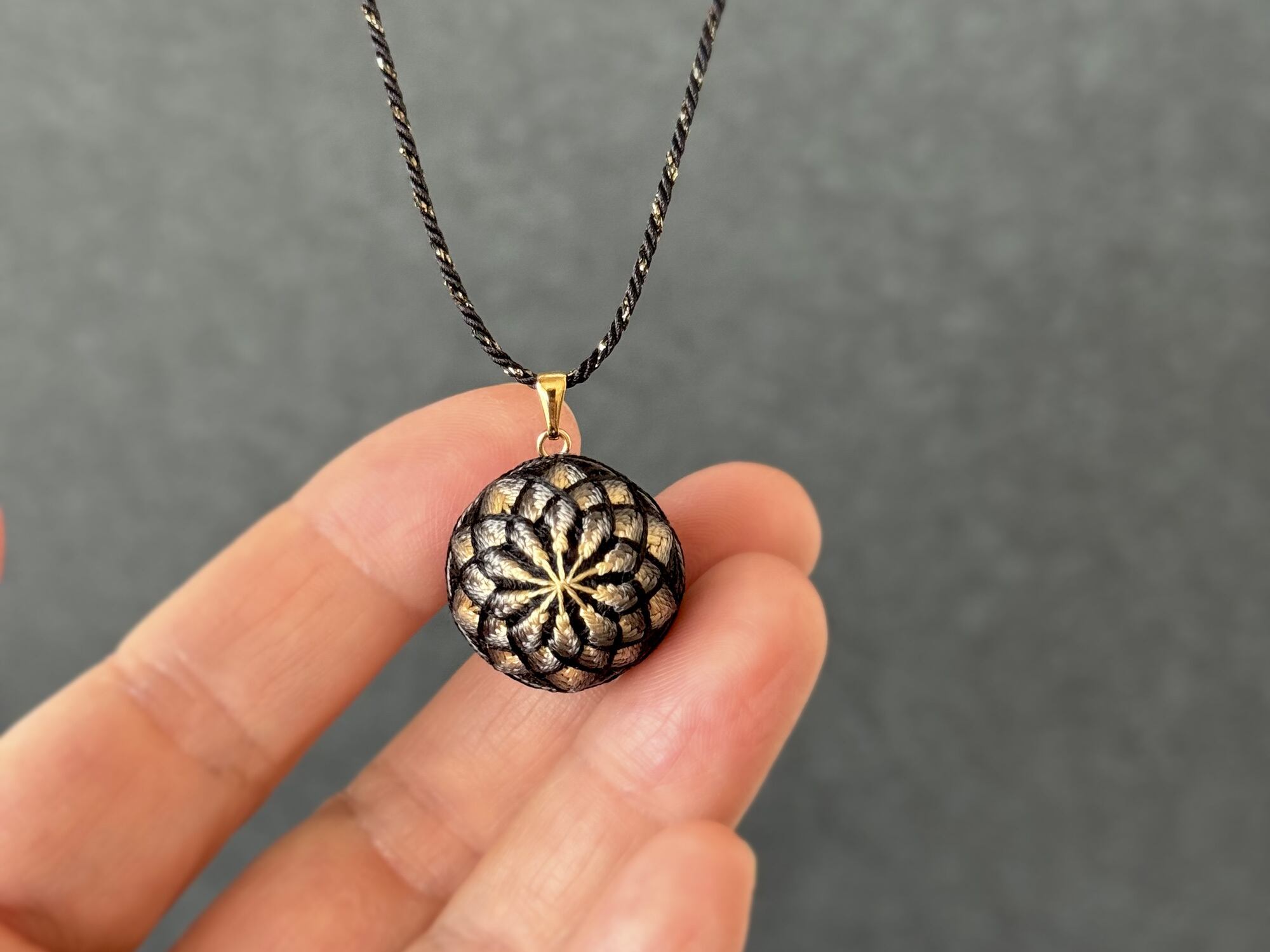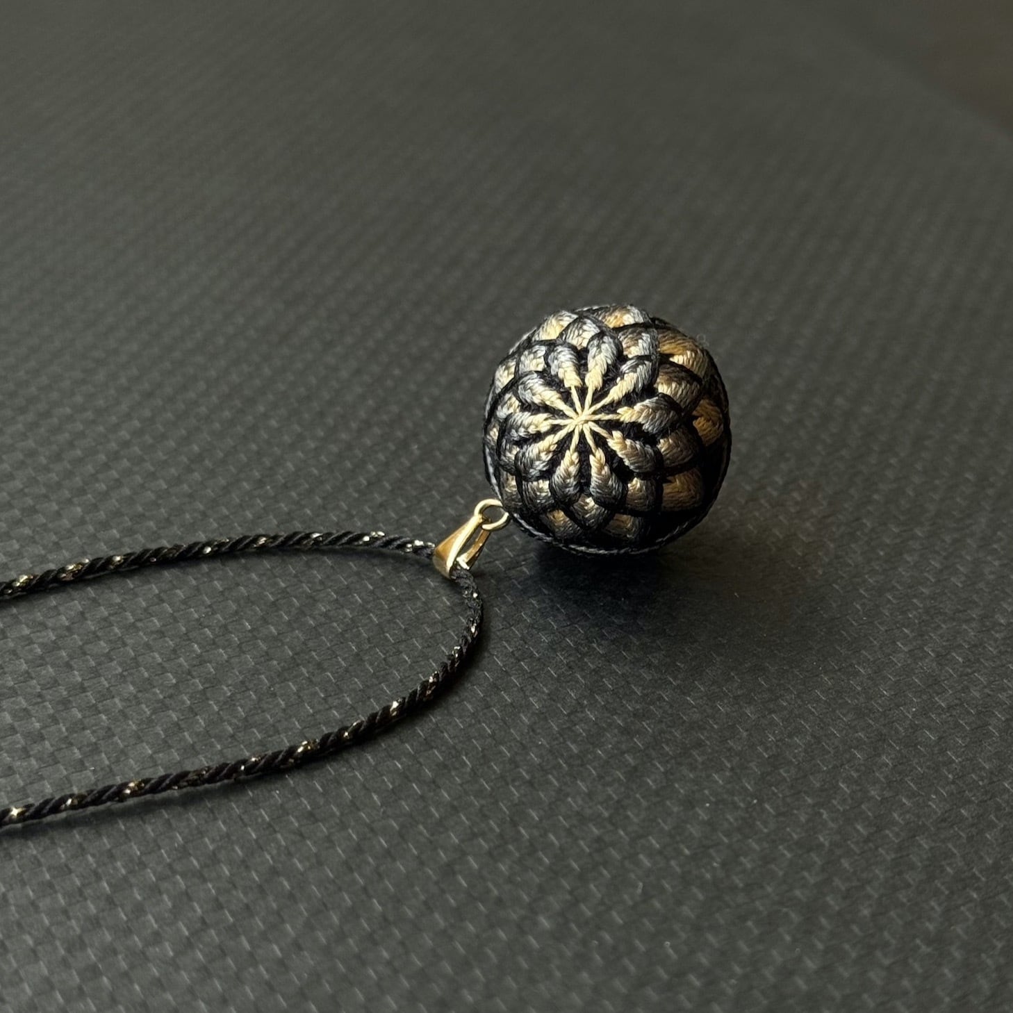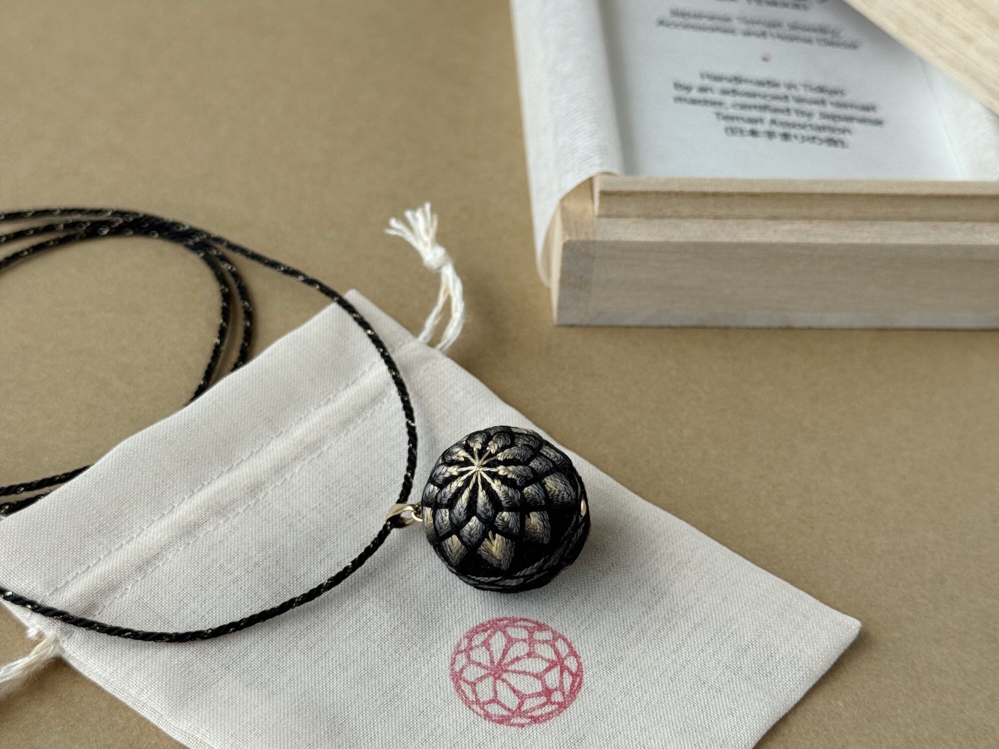 日本の伝統工芸《手まり》がジュエリーとして生まれ変わりました。麻の葉、菊、桜など、古来より人々に愛されてきた模様を、現代の感性に合わせてスタイリッシュなデザインへとアレンジしました。和装、洋装どちらのスタイルにも合うおしゃれなアクセサリーです。絹糸、銀糸と本金糸を使って、ひとつひとつ丁寧な手仕事で仕上げています。