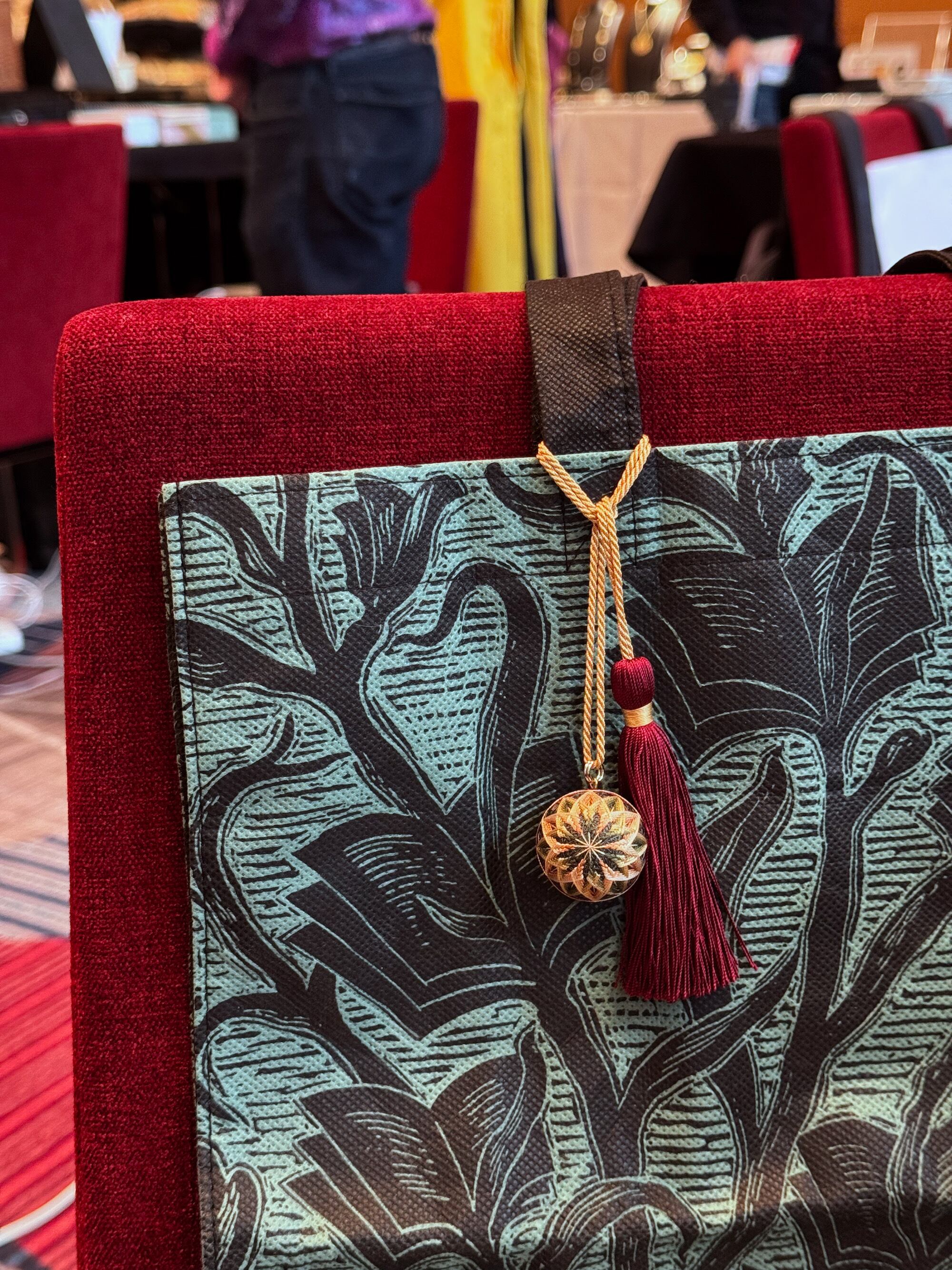 •手まり:緑・ゴルド、タッセル:バーガンディ(在庫残り1個)