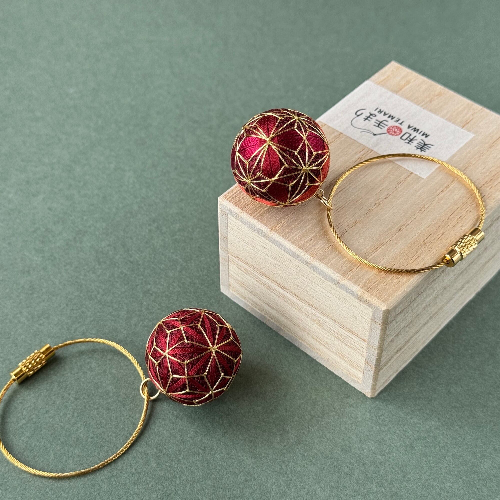 日本の伝統工芸《手まり》がジュエリーとして生まれ変わりました。麻の葉、菊、桜など、古来より人々に愛されてきた模様を、現代の感性に合わせてスタイリッシュなデザインへとアレンジしました。和装、洋装どちらのスタイルにも合うおしゃれなアクセサリーです。絹糸、銀糸と本金糸を使って、ひとつひとつ丁寧な手仕事で仕上げています。